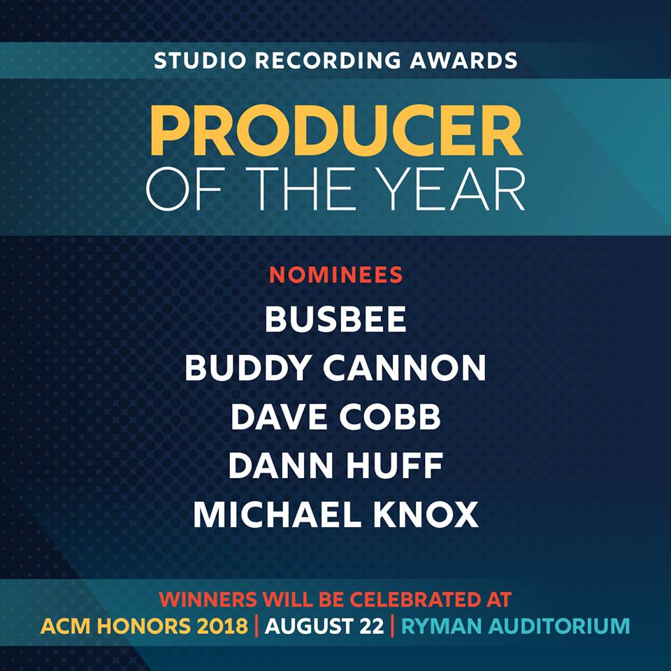 Michael Knox Nominated for Producer of the Year at the 53rd Academy of Country Music Awards / News / By MusicKnox ACADEMY OF COUNTRY MUSIC® REVEALS INDUSTRY AWARD AND STUDIO RECORDING AWARD NOMINEES. View Full List of Nominees.